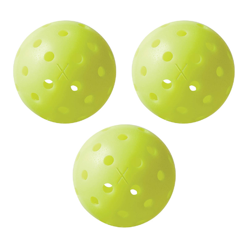 The X-40 balls are one of the first and finest balls ever created for the sport of pickleball. Made of the best PE material and uses an advanced single piece design, the X-40 ball will withstand hours of the most aggressive play. They deliver a superb flight path thanks to the precision of machine drilled holes.
